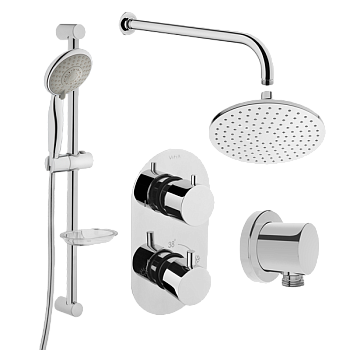 Набор встроенной душевой системы Solid S на 3 направления, хром (верхняя лейка, излив, ручной душ, с